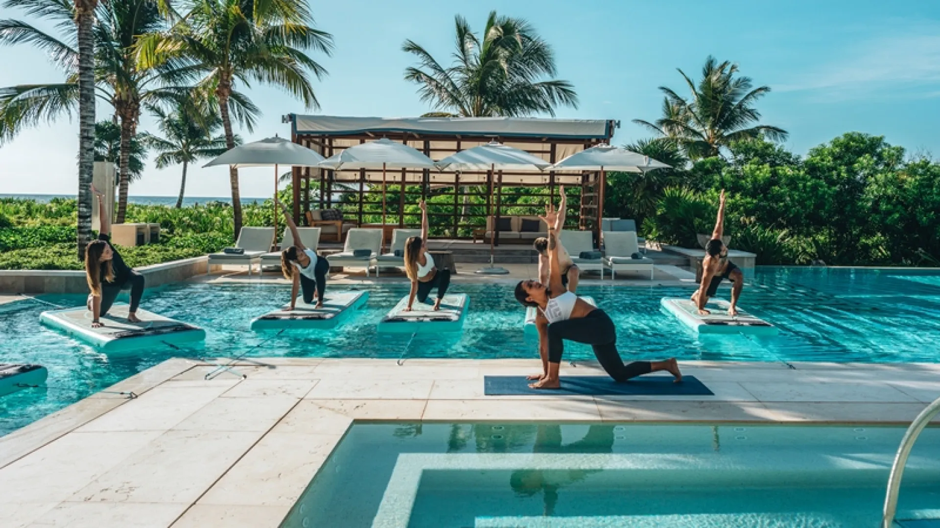 Para aquellos huéspedes más activos, Aura Wellness brinda clases grupales de yoga, pilates, ciclismo bajo techo, cross training, ejercicios HIIT y mucho más. Para no dejar de disfrutar la playa del caribe mexicano, hay sesiones de entrenamiento privadas en esta misma.
